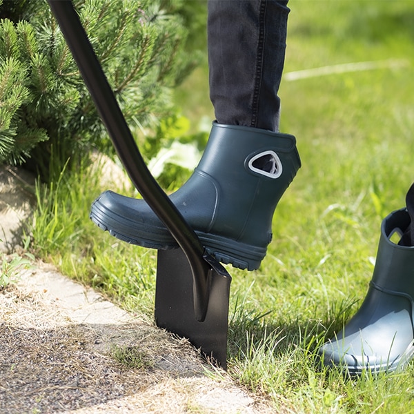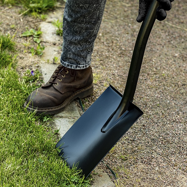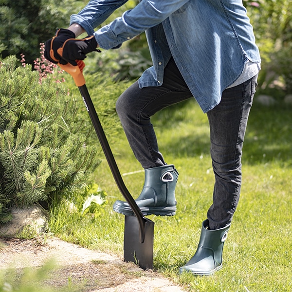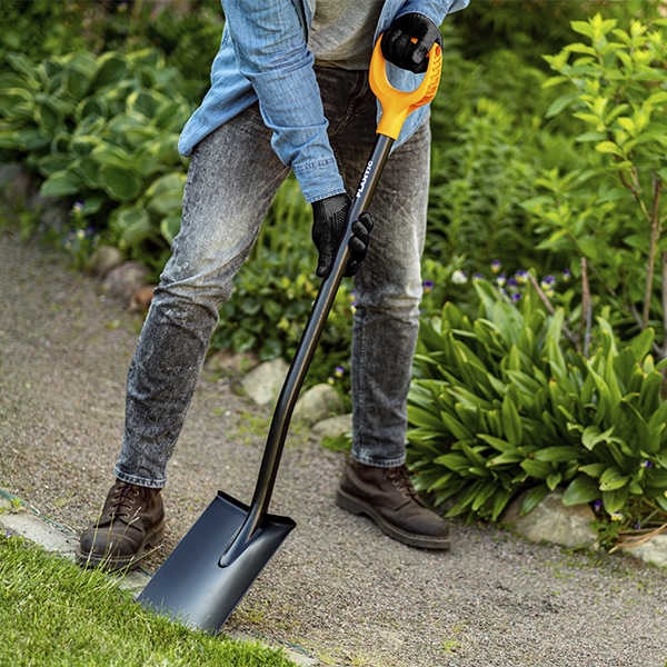 - Закругленное лезвие лопаты Plantic позволяет легко обрабатывать кромку газона, копать и разрыхлять землю