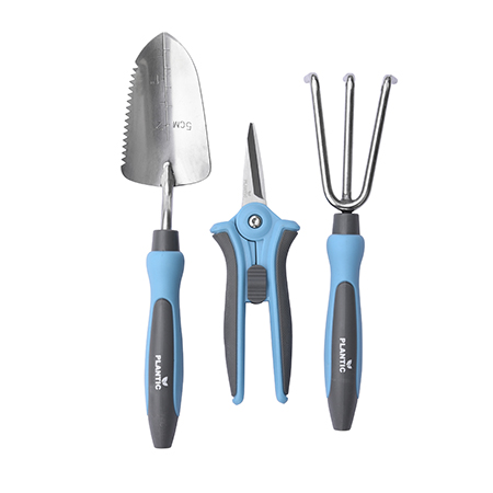 Набор для посадочный работ включает в себя 3 предмета: совок для рассады, культиватор, ножницы для маленьких растений. Незаменим при уходе за комнатными цветами и рассадой.