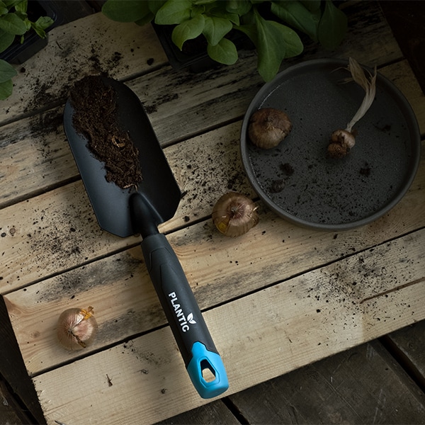 - Совок Ergo подходит для посадки растений в твердую почву